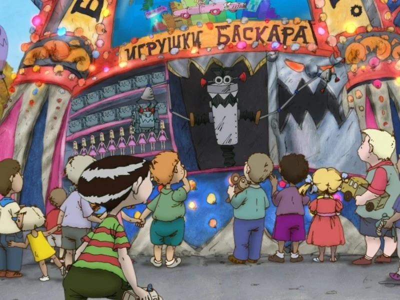В современной Москве Карабас-Барабас, сменив имидж и имя, открывает фабрику-конвейер по производству игрушек. В цехах высотного здания из старых игрушек всех сортов и форм производятся две инновационные унифицированные модели: робот Зубастик для мальчиков и кукла Гламушка для девочек. Господин Баскара - так сейчас следует называть Карабаса - уверен, что будущее и огромные прибыли - именно за этими моделями.